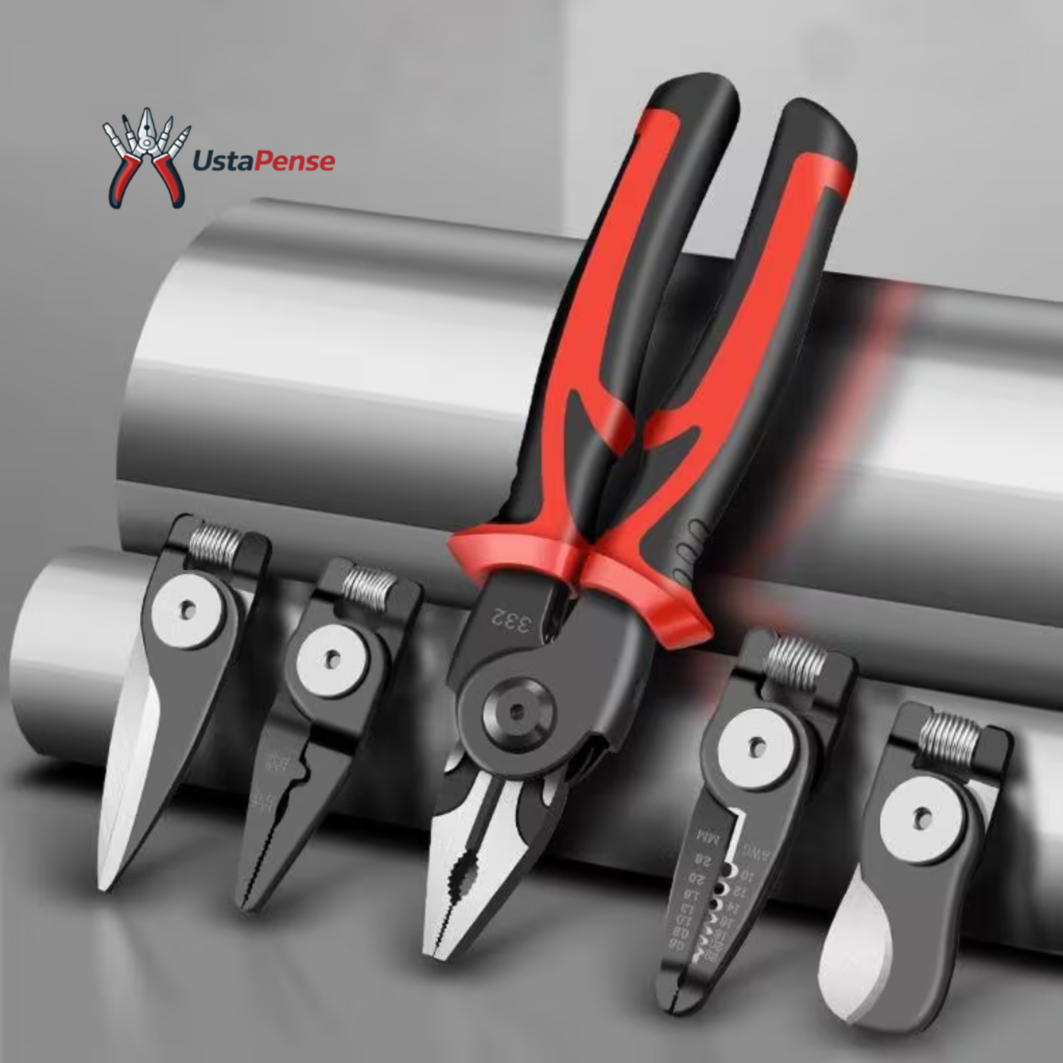 UstaPense ile kablo kesme, soyma, krimp sıkma ve metal kesme işlemlerini tek bir aletle yap. Değiştirilebilir uç sistemi sayesinde her iş için ayrı alet taşıma ihtiyacı ortadan kalkar.